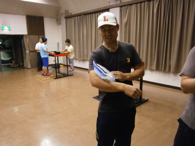 常に他の人の練習時も氷で冷やしてました。