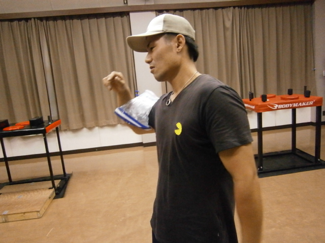 試合の疲労と痛みで練習というより氷で冷やしに来てました。