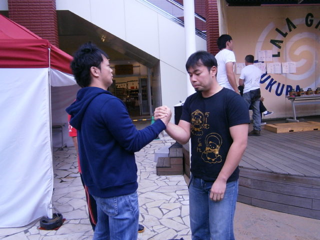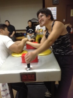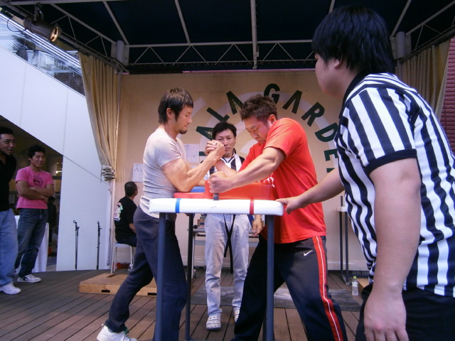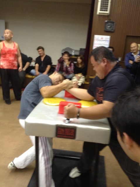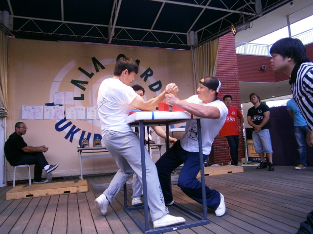 椎名君、肘と背中が離れない様にね♪ジェニーさんのお友達の方、初アームレスリングはいかがでしたか?(^ω^)
